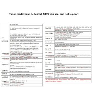 1. This item only works with Android 4.0 and above 4.1,4.2 system phone, does Not support iOS system; Support Android Phone which has OTG and UVC function (Your smart phone must be Genuine which have license and support external camera, make sure that it will not shield the external camera).